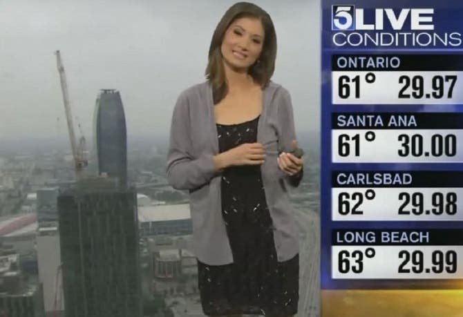 La presentadora del tiempo de la cadena KTLA de Los Angeles, llamada Liberté Chan, estaba delante de la cámara haciendo su trabajo cuando los espectadores empezaron a enviar mails para que se tapara.