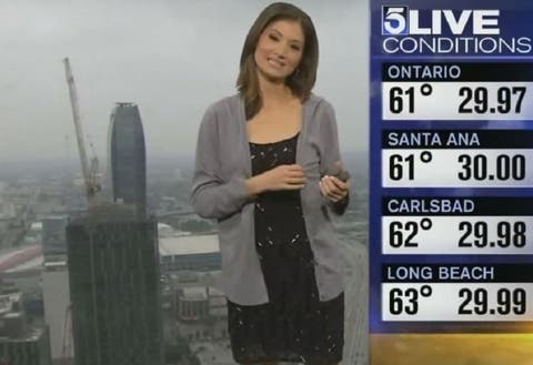 La presentadora del tiempo de la cadena KTLA de Los Angeles, llamada Liberté Chan, estaba delante de la cámara haciendo su trabajo cuando los espectadores empezaron a enviar mails para que se tapara.