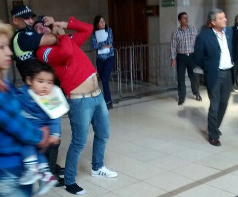 Gritos, empujones, golpes, corridas, sangre y cuatro hombres detenidos. Ese fue el saldo del escándalo que se desató el jueves en el Palacio de Tribunales que obligó a suspender por casi una hora el juicio por el homicidio del niño